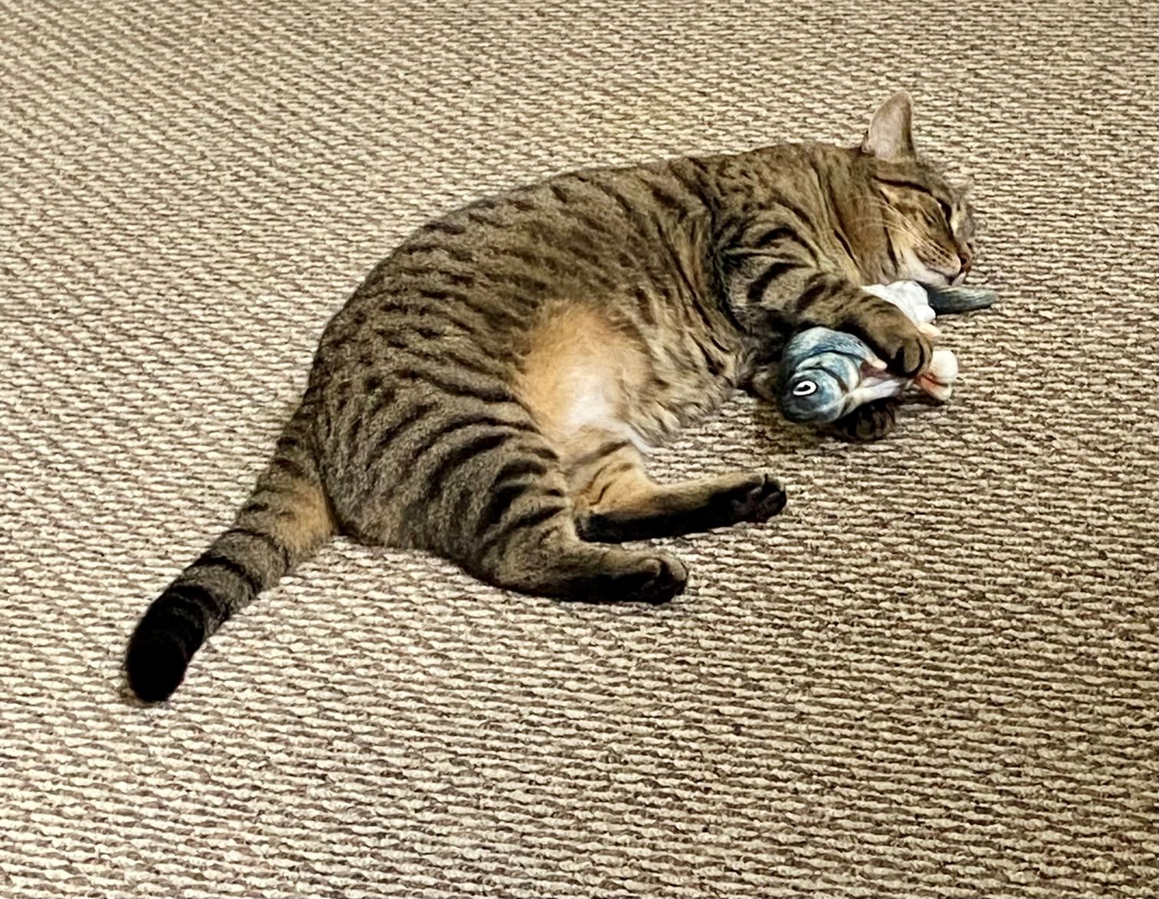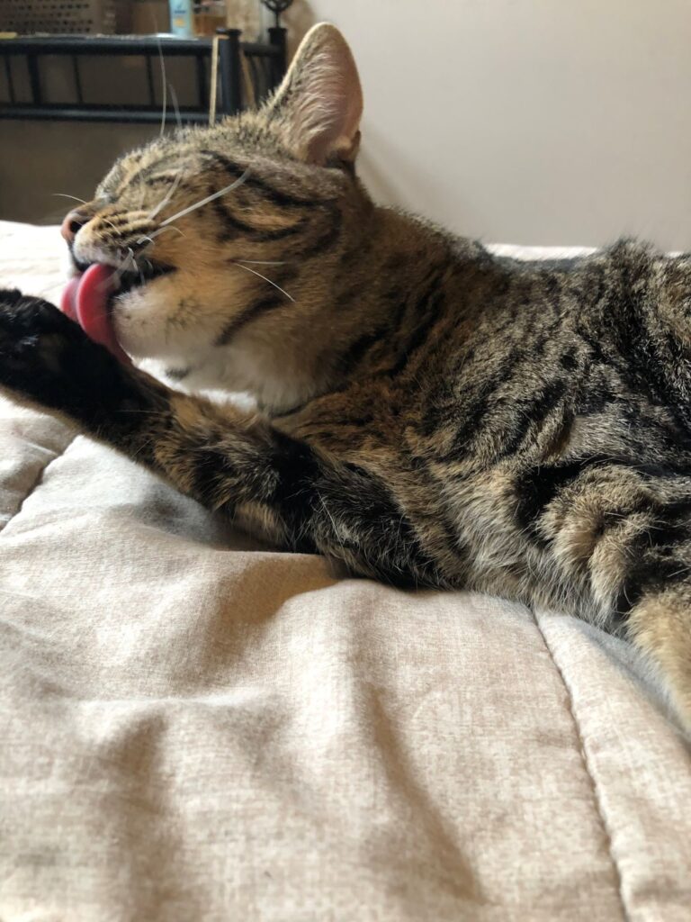 Khloe is a 5 year old tabby with a ton of personality. She constantly wants to play, she loves to play fetch with the spring toys or to chase a laser pointer. She’s super talkative, especially when she wants something.