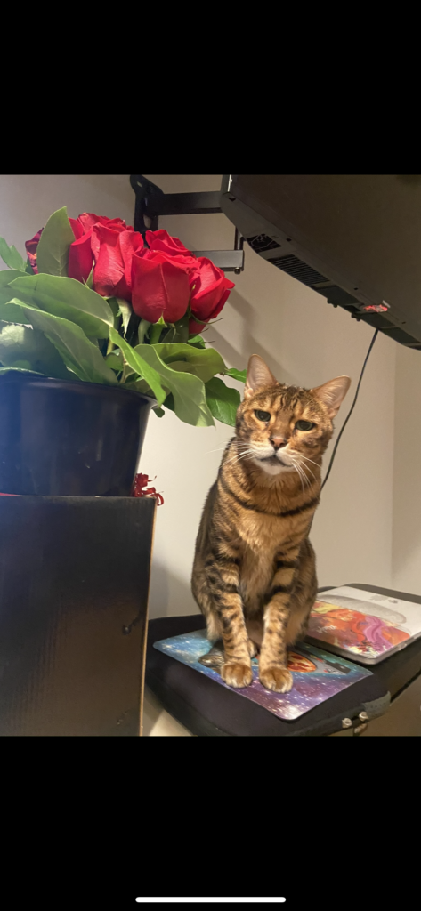 Ugh Loves snuggles, hiding under the blankets, meowing and sleeping. Hates car rides.